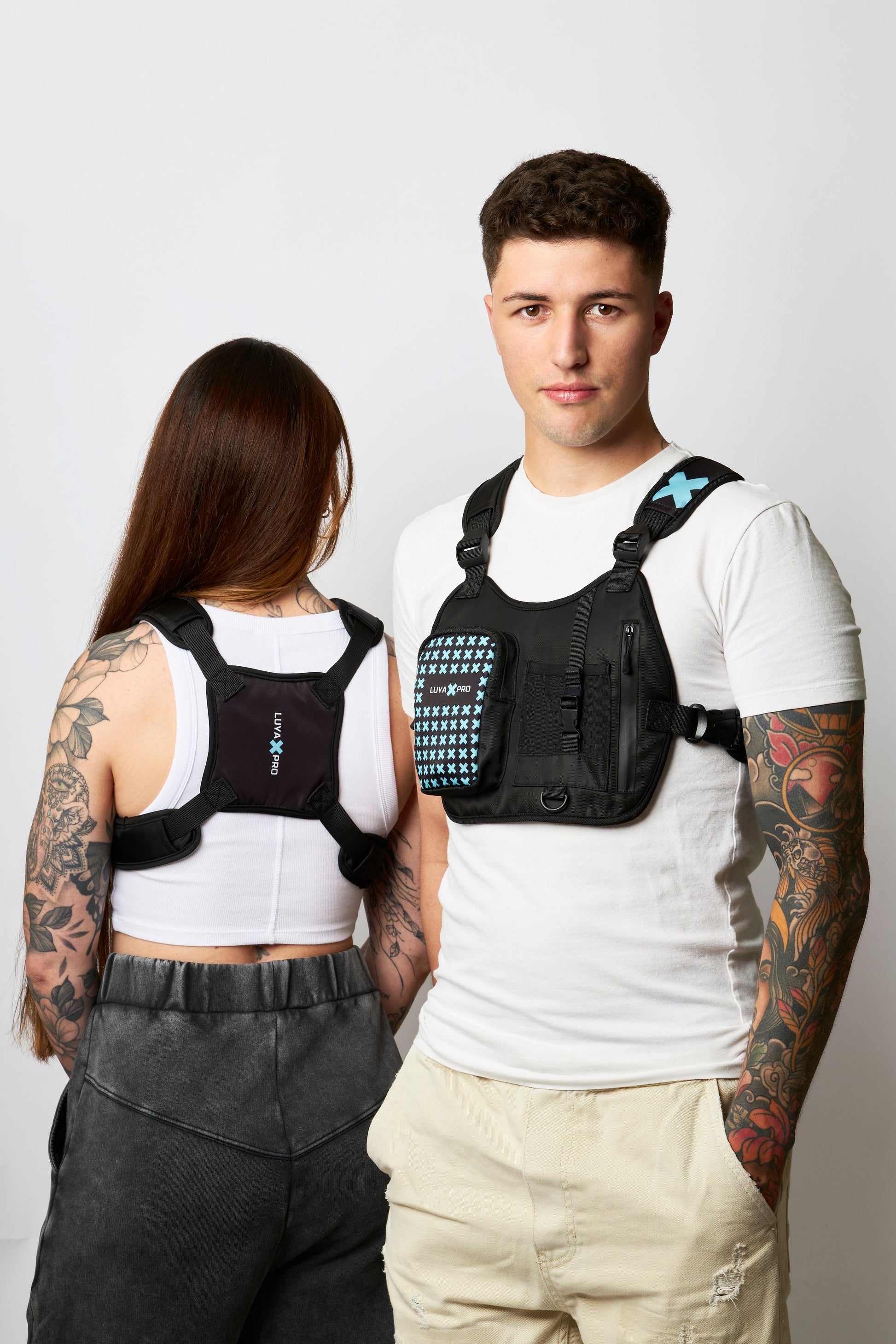 Su diseño simple te da espacio extra gracias a su doble bolsillo para llevar lo esencial y correas ajustables que garantizan comodidad y libertad de movimiento en cada aventura.