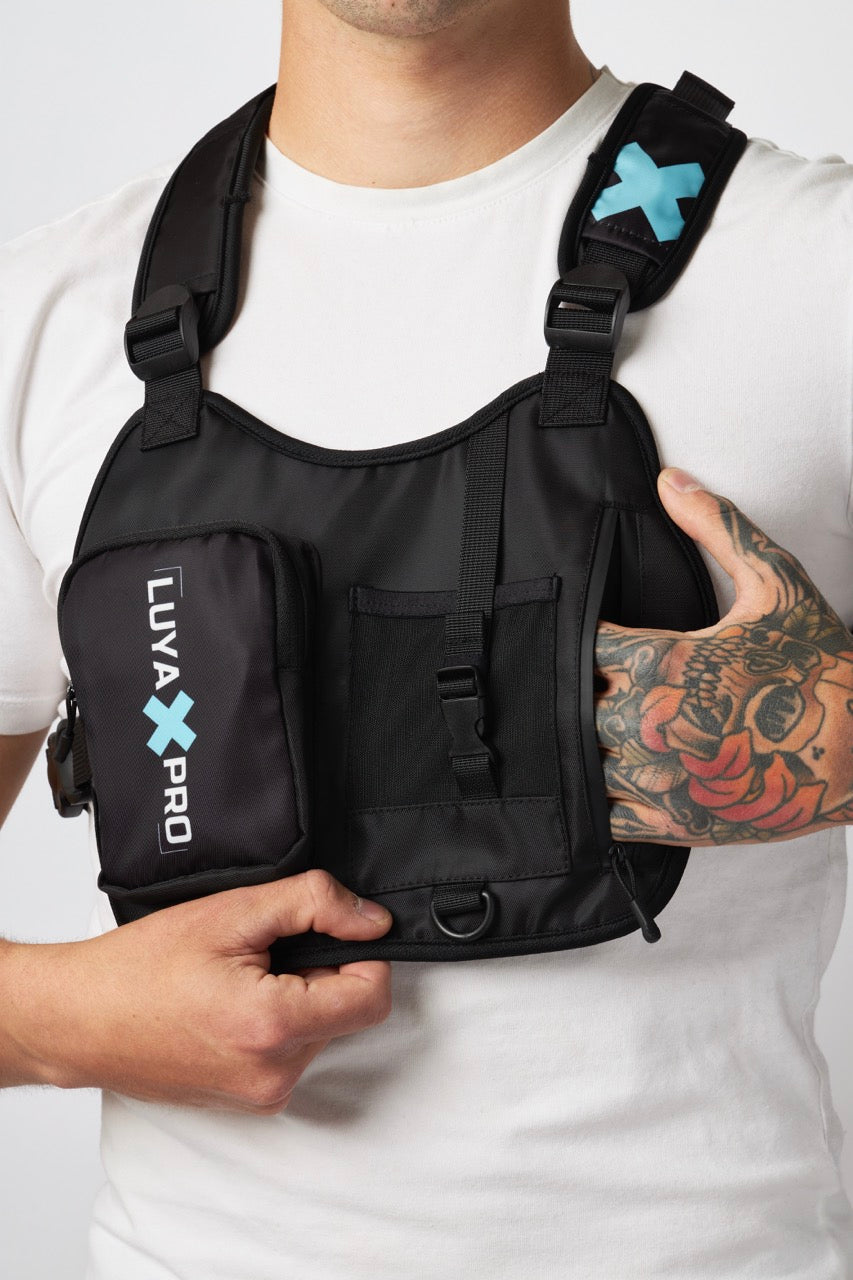 Su diseño simple te da espacio extra gracias a su doble bolsillo para llevar lo esencial y correas ajustables que garantizan comodidad y libertad de movimiento en cada aventura.